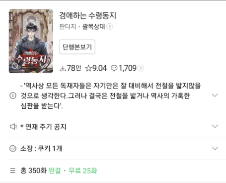 외전까지 합쳐서 350화인 작품이야.