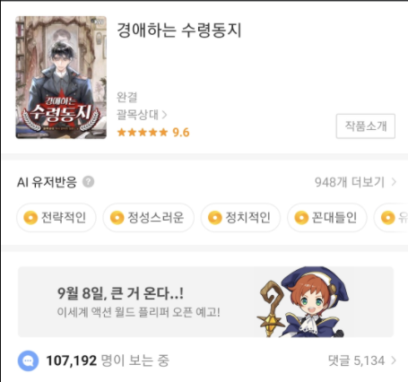 벌써 댓글창이 불타오르고 있다 카카오페이지 별점&댓글